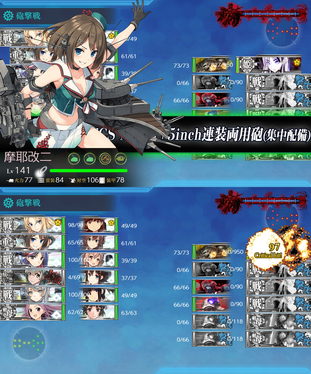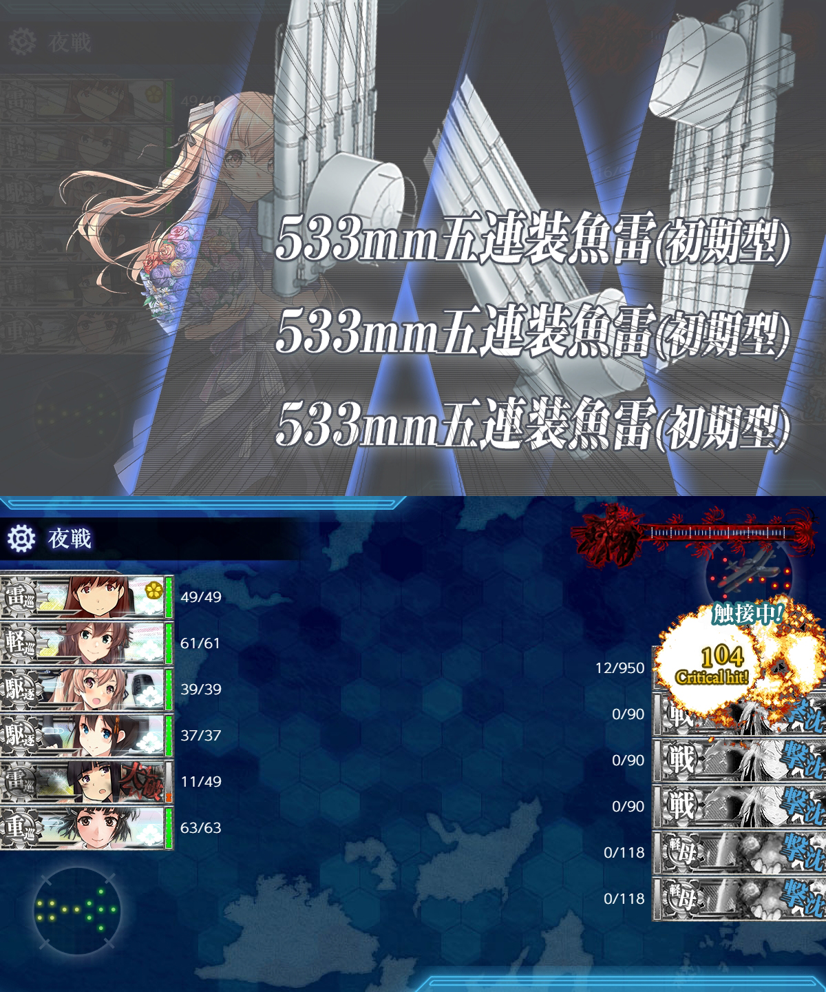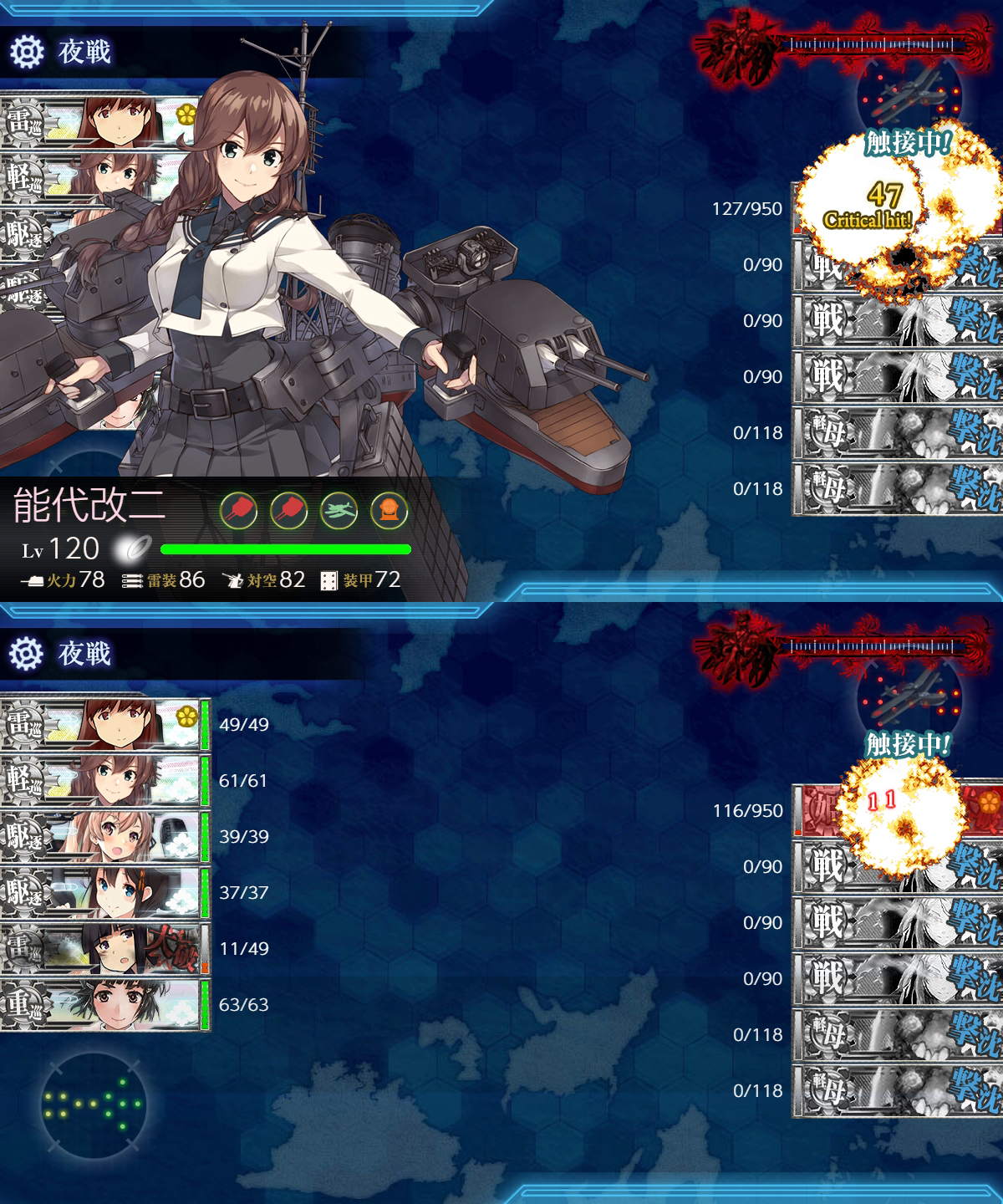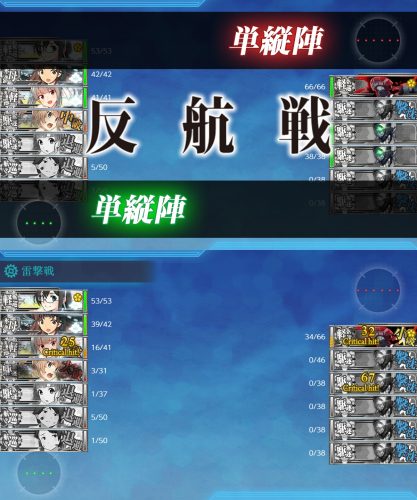 なんにせよ変更が効いたのか、昼戦決着に夜戦での撃破と