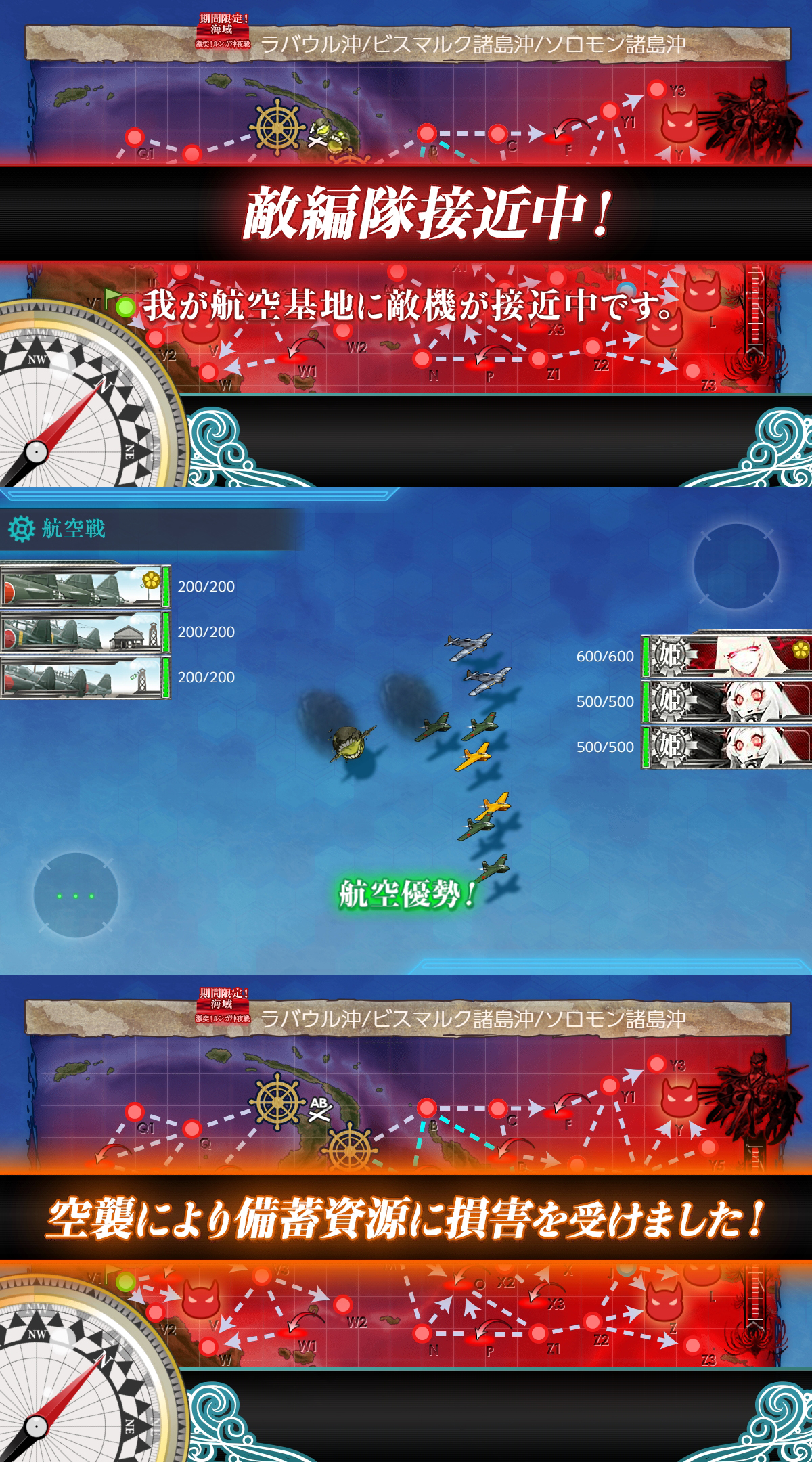 低速艦によるルート逸れで、空襲マスを踏んでしまいました……。