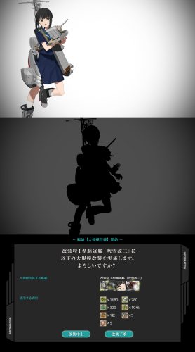 ※「吹雪改三」への大規模改装には、「改装設計図」「戦闘詳報」「新型兵装資材」、そして極めて大量の開発資材と高速建造材が必要です。
