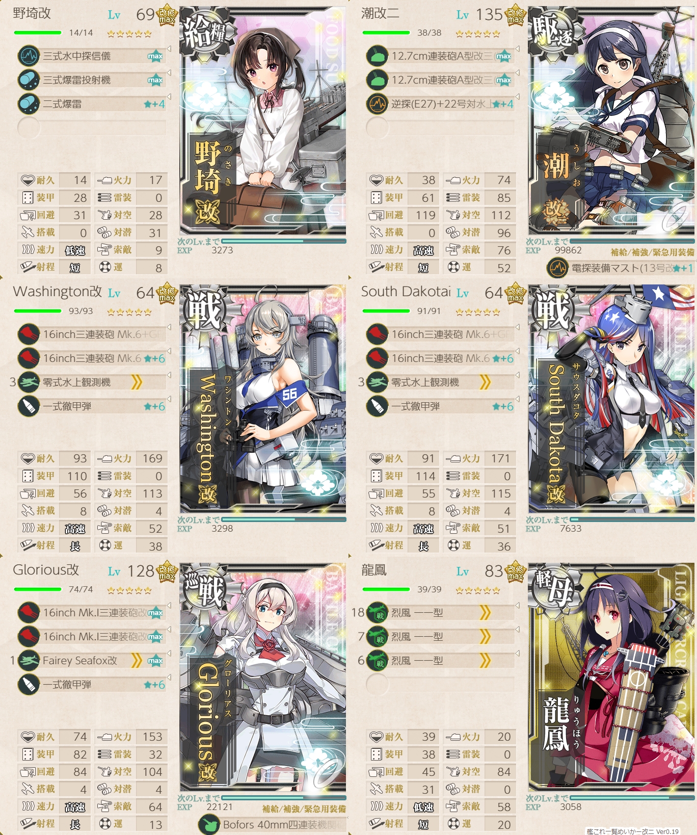 勘違いしやすい点としまして、21型熟練は改修度☆MAXではなく熟練度>>で良いということです!