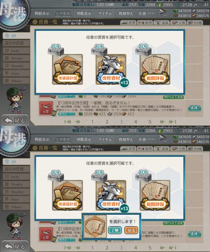- 出撃任務・【13周年記念任務群】艦隊13周年、抜錨せよ!(単発任務)