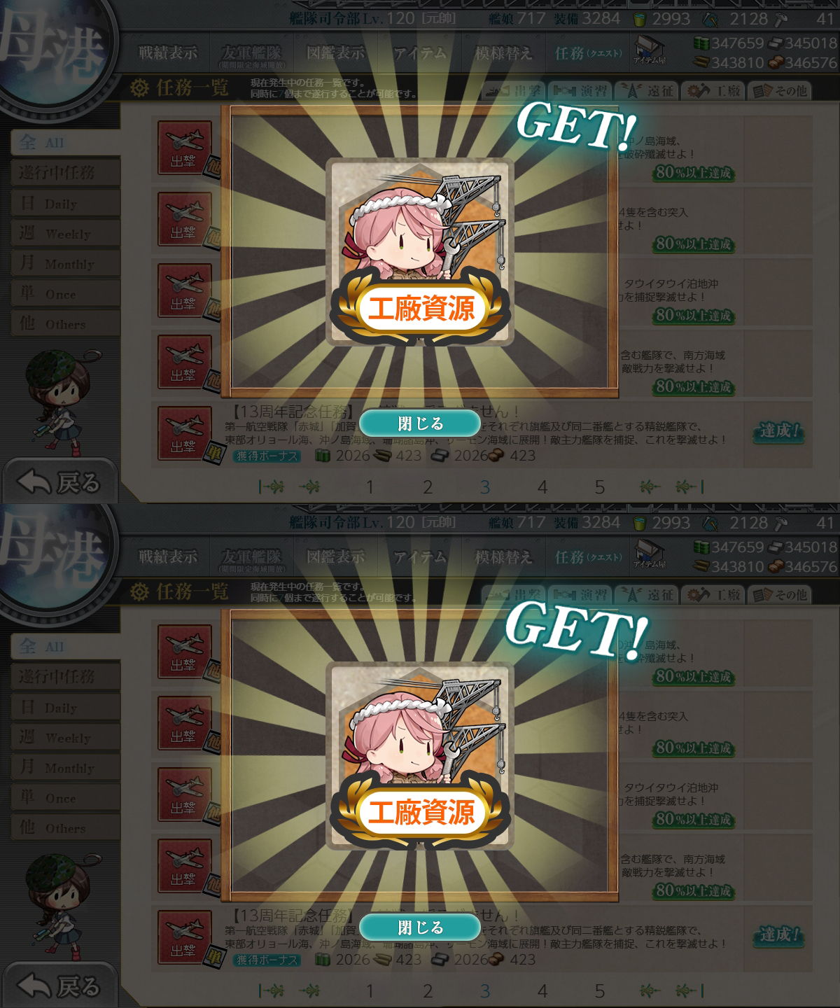 - 工廠任務・【13周年記念任務:拡張作戦】大規模工廠任務(マンスリー任務)
