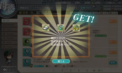 - 出撃任務・【13周年記念任務:拡張作戦】強行輸送作戦(マンスリー任務)