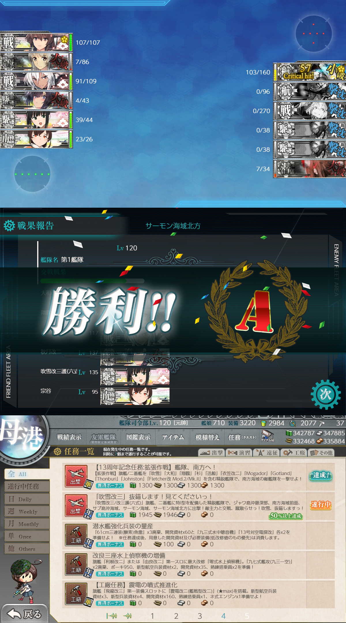 1-3・1-4海域のボス戦でS勝利×二回、